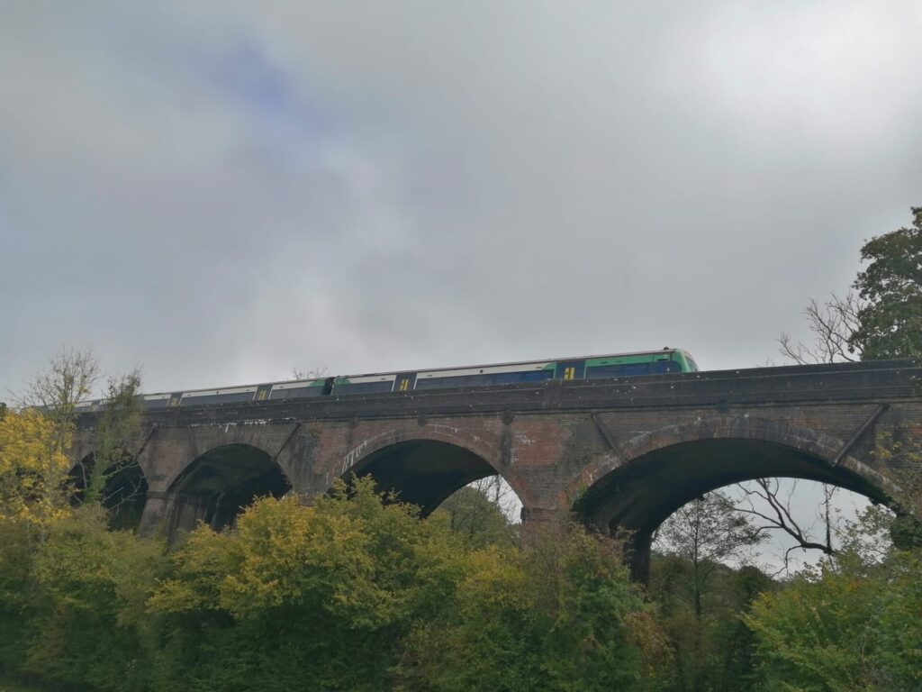 Circular walk from Pound Green, Buxted, through the local countryside.The rather impressive Sleetches Viaduct, with 11 arches